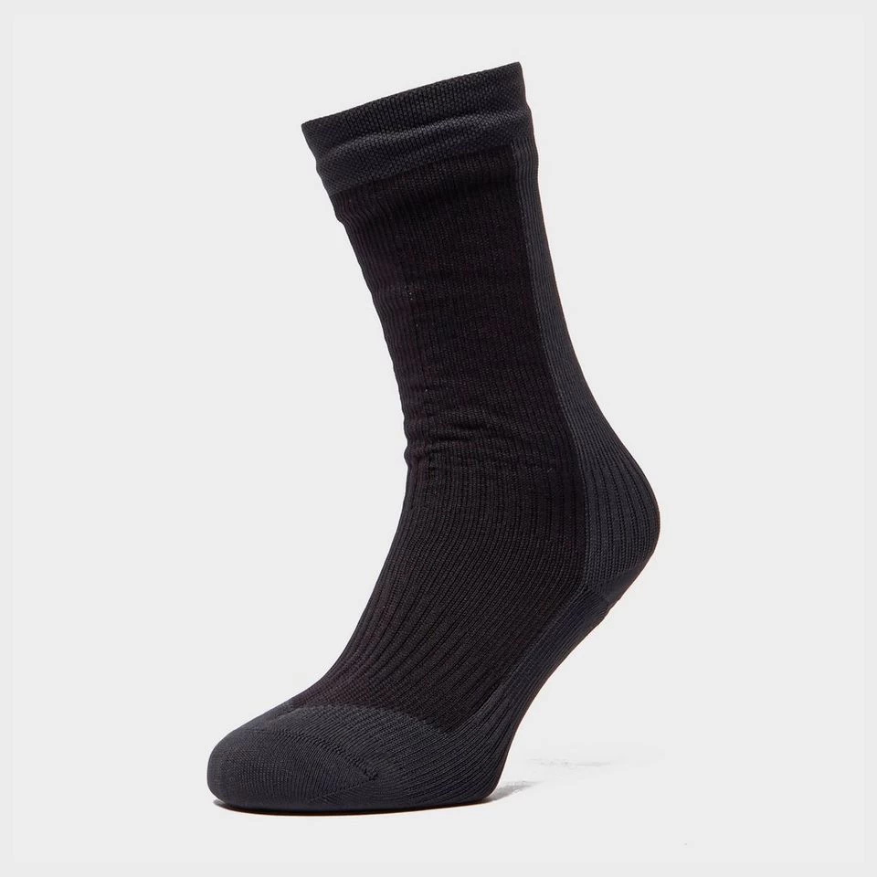 High performance mid length sock balancing warmth, comfort and breathability perfect for a multitude of activities. Constructed from a stretchy hydrophilic membrane blended with soft merino wool the Sealskinz mid length hiking sock stretches to fit the foots natural shape keeping the foot dry and protected against wind and rain.