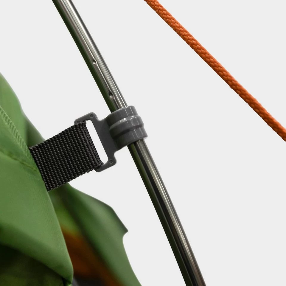 - TBS®II Tension Band System – ensures the tent performs in adverse conditions, especially in strong, changeable winds. When tensioned, the bands brace the pole at 3 points, and reduces sideways movement. Adjust TBS®II to remove slack. Do not over tension, as this may deform the poles. Can be stowed away in calm weather